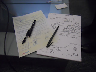 We were then introduced to Richard who gave us a brief and showed us into a separate room used for discussions. The brief was for Halford's and their bicycles. They're main marketing problem is that supermarkets like Tesco's and Toys R Us are selling cheaper bikes. So now the message that Halford's want to communicate is that their bikes are more robust, durable and strong.